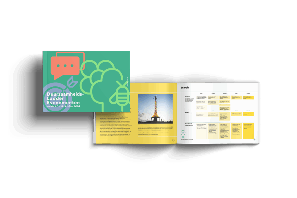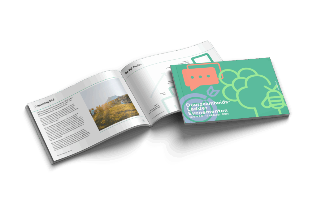 At the end of 2024, I guided the editorial and design process of the Duurzaamheidsladder Evenementen (DLE) and Duurzaamheidsladder Zakelijke Evenementen (DLZ), a framework to help organisers, municipalities, and suppliers take concrete steps toward more sustainable and inclusive events. The tool combines ecological, social, and governance themes in a five-step growth model that motivates organisations to keep developing.